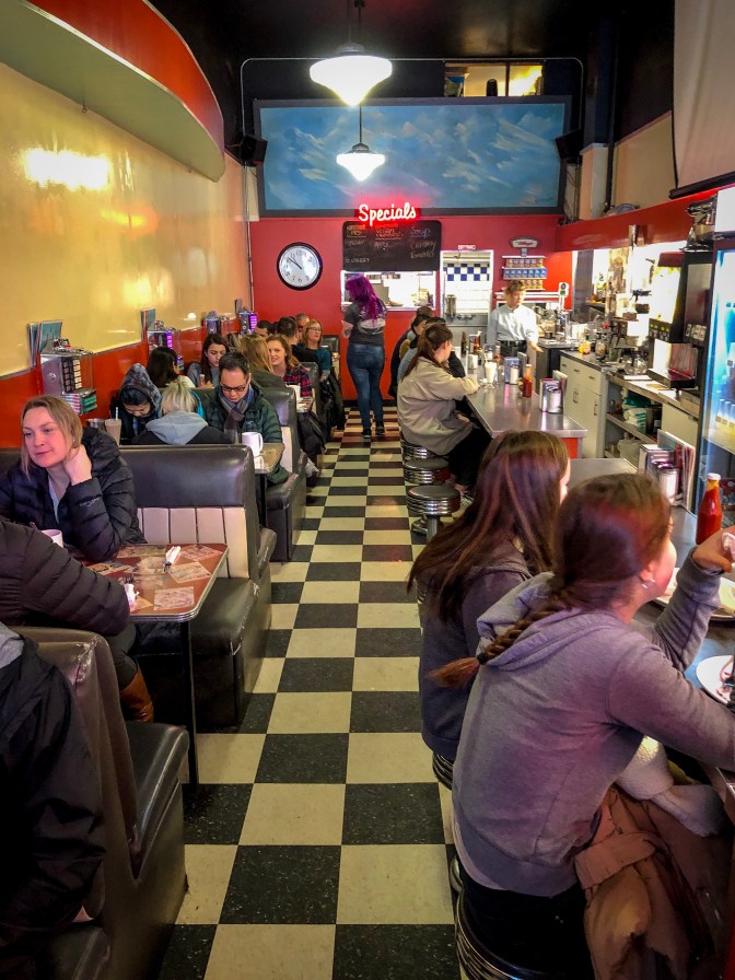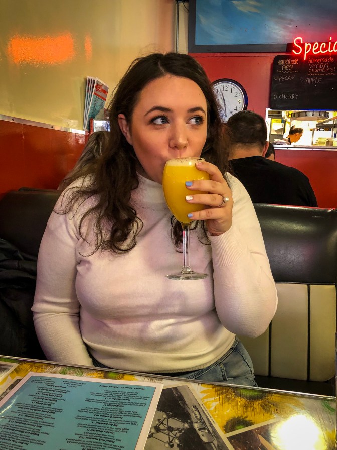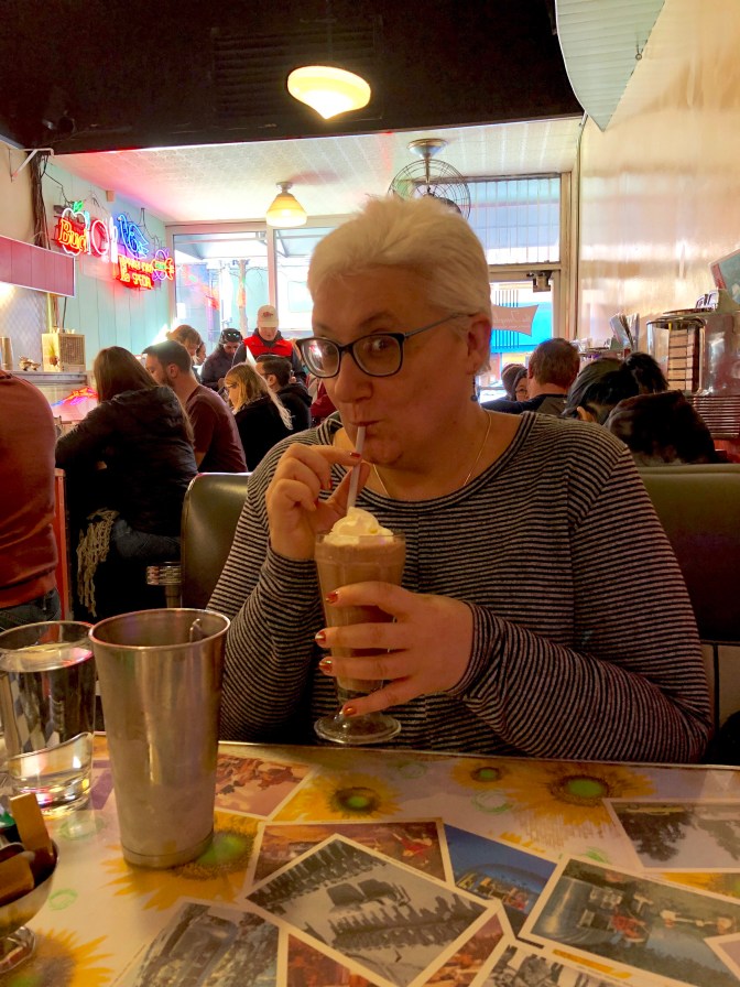 A 15-minute walk south-west gets us to the Templeton – a great choice for Sunday brunch. A classic diner decor with booths and counter seating for about 40 people, it’s menu includes alcoholic shakes and cocktails – which we take full advantage of! I had a Chocolate Hazelnut Shake (Frangelico, Nutella, and Chocolate ice cream) while Michayla had a mimosa.