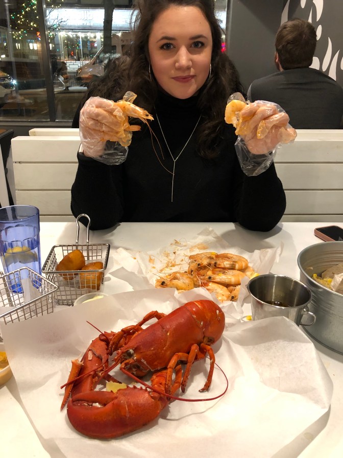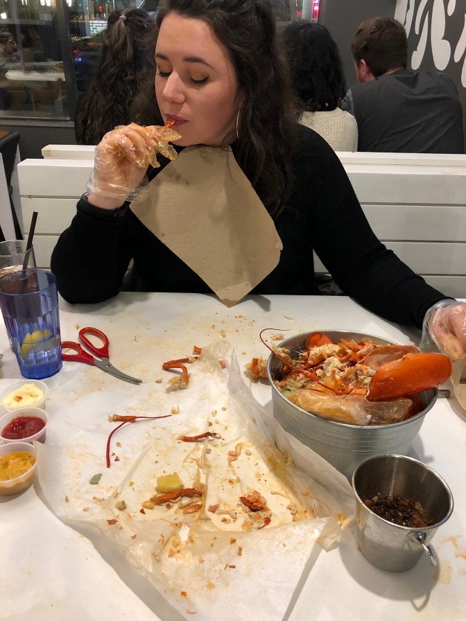 Dinner tonight involved skinning shrimp and cracking lobster shell at a Vancouver favourite – The Holy Crab.