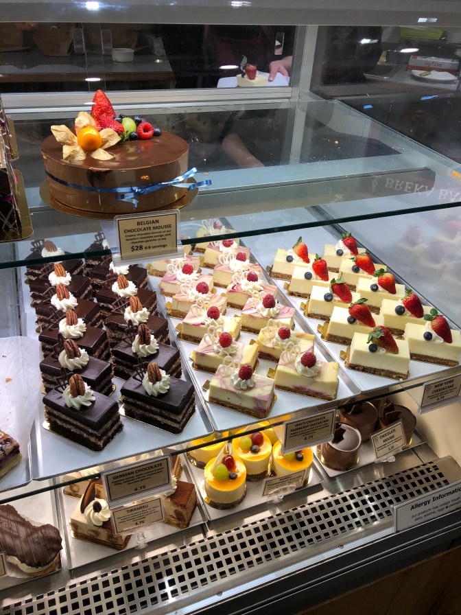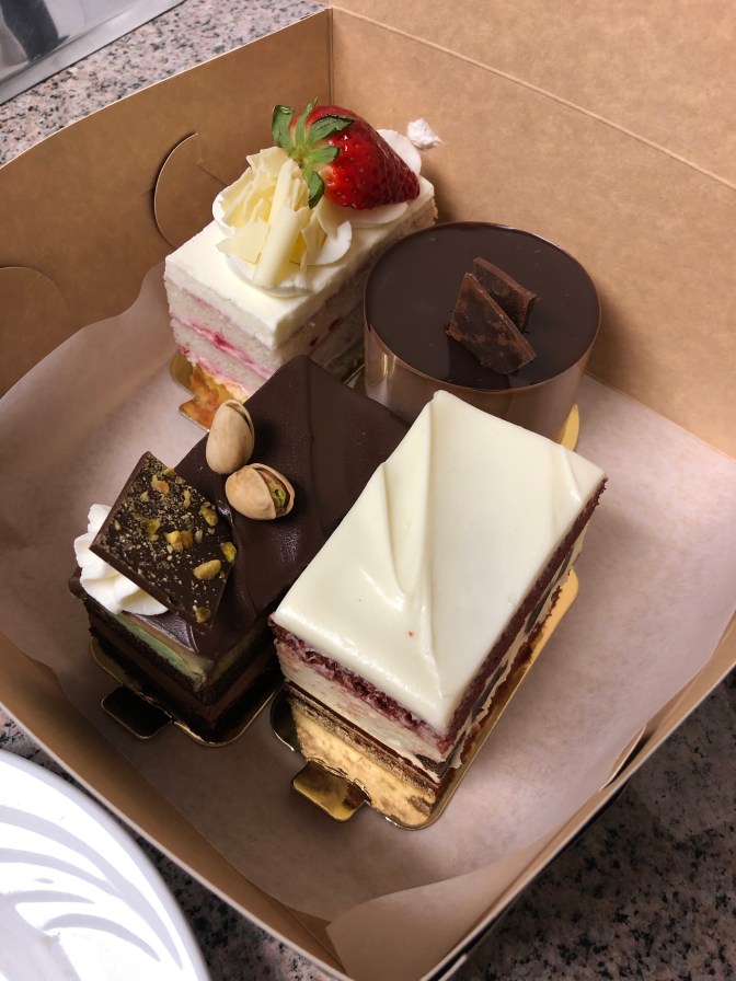 Just a 10-minute wall back towards our hotel, at Breka Cafe and Bakery we selected four slices of dessert – strawberry shortcake, chocolate mousse, pistachio ganache, and red velvet cake. Delicious!!